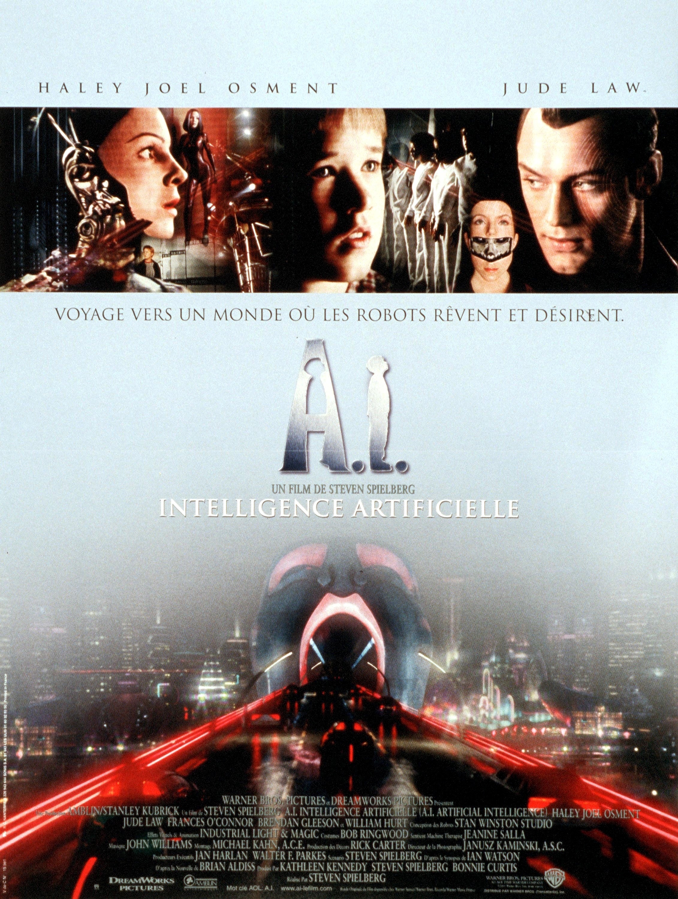 | Avec : Haley Joel Osment, Jude Law, Frances O’Connor, Sam Robards, Jake Thomas, William Hurt, Robin Williams, Ben Kingsley, Meryl Streep | |