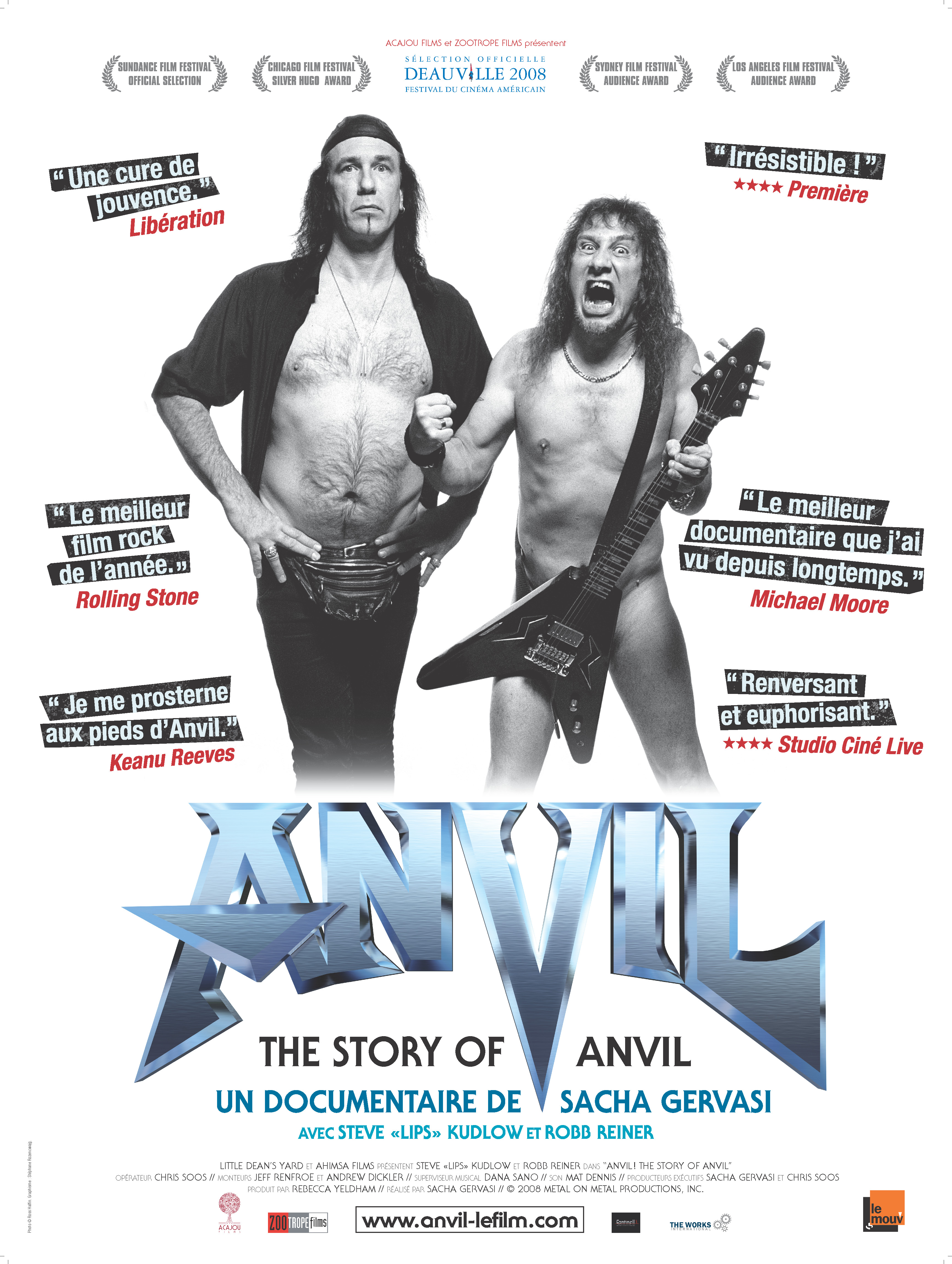 | Synopsis : A l’âge de quatorze ans, Steve « Lips » Kudlow et son meilleur ami Robb Reiner font le serment de faire de la musique ensemble toute leur vie durant. Leur groupe de heavy metal Anvil va influencer de nombreux groupes tels que Metallica, Slayer et Anthrax. En 1982, les membres du groupe Anvil sont considérés comme « les demi-dieux du heavy metal canadien ». Mais le triomphe est éphémère. Plus de 25 ans après cet épisode, le chanteur Steve « Lips » Ludlow et le batteur Robb Reiner continuent de nourrir des espoirs de gloire et de fortune. Entre la famille et les petits boulots, ils multiplient les concerts dans les bars, tentent une tournée en Europe, qui s’avère désastreuse, et enregistrent un treizième album sans le soutien d’une compagnie de disques. | |