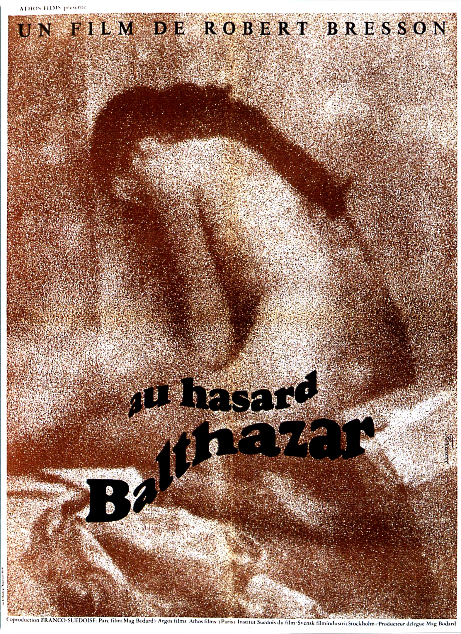 | Synopsis : La vie de l’âne Balthazar, plongé au milieu des drames humains et qui en meurt. « Je voulais que l’âne traverse un certain nombre de groupes humains qui représentent les vices de l’humanité. Il fallait aussi, étant donné que la vie d’un âne est très égale, très sereine, trouver un mouvement, une montée dramatique. C’est à ce moment que j’ai pensé à une fille, à la fille qui se perd. » | |