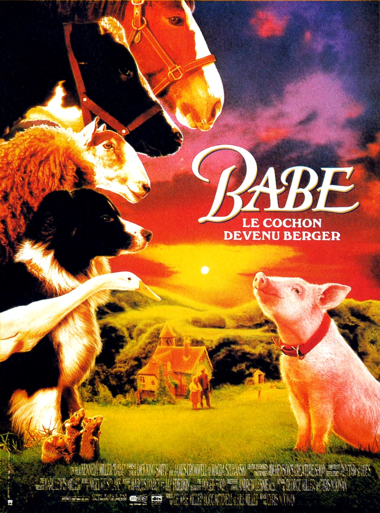| Synopsis : Conte animalier dont le heros est Babe, un tout jeune porcelet. Le fermier Hoggett le gagna pour quelques sous dans une foire agricole. Trop jeune pour passer a la casserole mais neanmoins conscient du sort qui l’attend, Babe va se rendre indispensable a la ferme et devenir le premier cochon berger. Ce film fut realise a Robertson, bourgade australienne de 275 habitants que vinrent grossir 500 figurants, 200 techniciens et 500 animaux entraines par le dresseur americain Karl Lewis Miller. | |