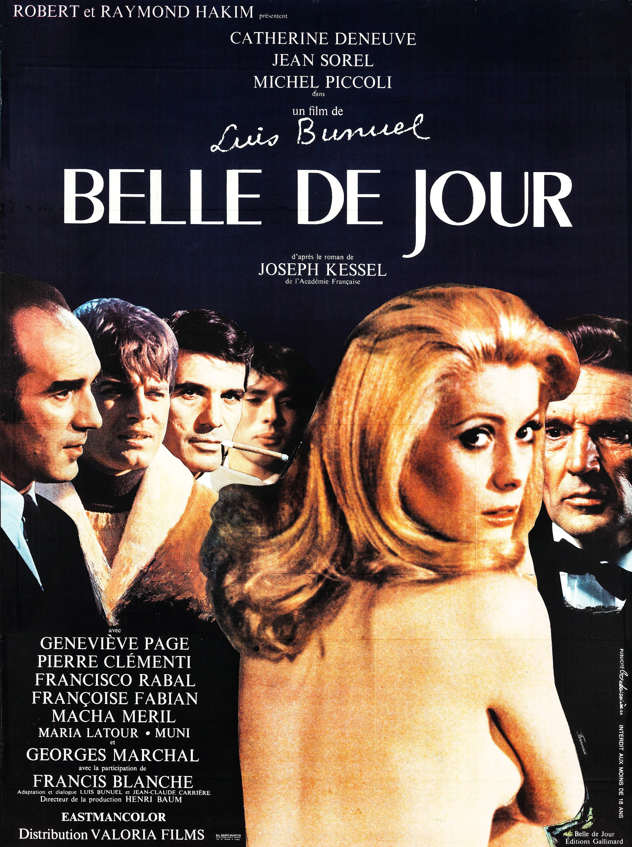 | Synopsis : Séverine Serizy est une jeune et très belle femme aux fantasmes masochistes assez particuliers. Elle est mariée au docteur Pierre Serizy qu’elle aime « au-delà du plaisir » : elle ne parvient en effet pas à trouver le plaisir auprès de lui, ce qui les frustre tous les deux. Un ami du couple, Monsieur Henri Husson, lui parle d’un bordel de luxe et lui avoue son désir pour elle. Insatisfaite sexuellement, Séverine commence secrètement à y travailler, se prostituant seulement certains après-midi de 14 à 17 heures, d’où son surnom Belle de jour, avant de retourner dans les bras de son mari, qui, heureux, ne se doute de rien. | |