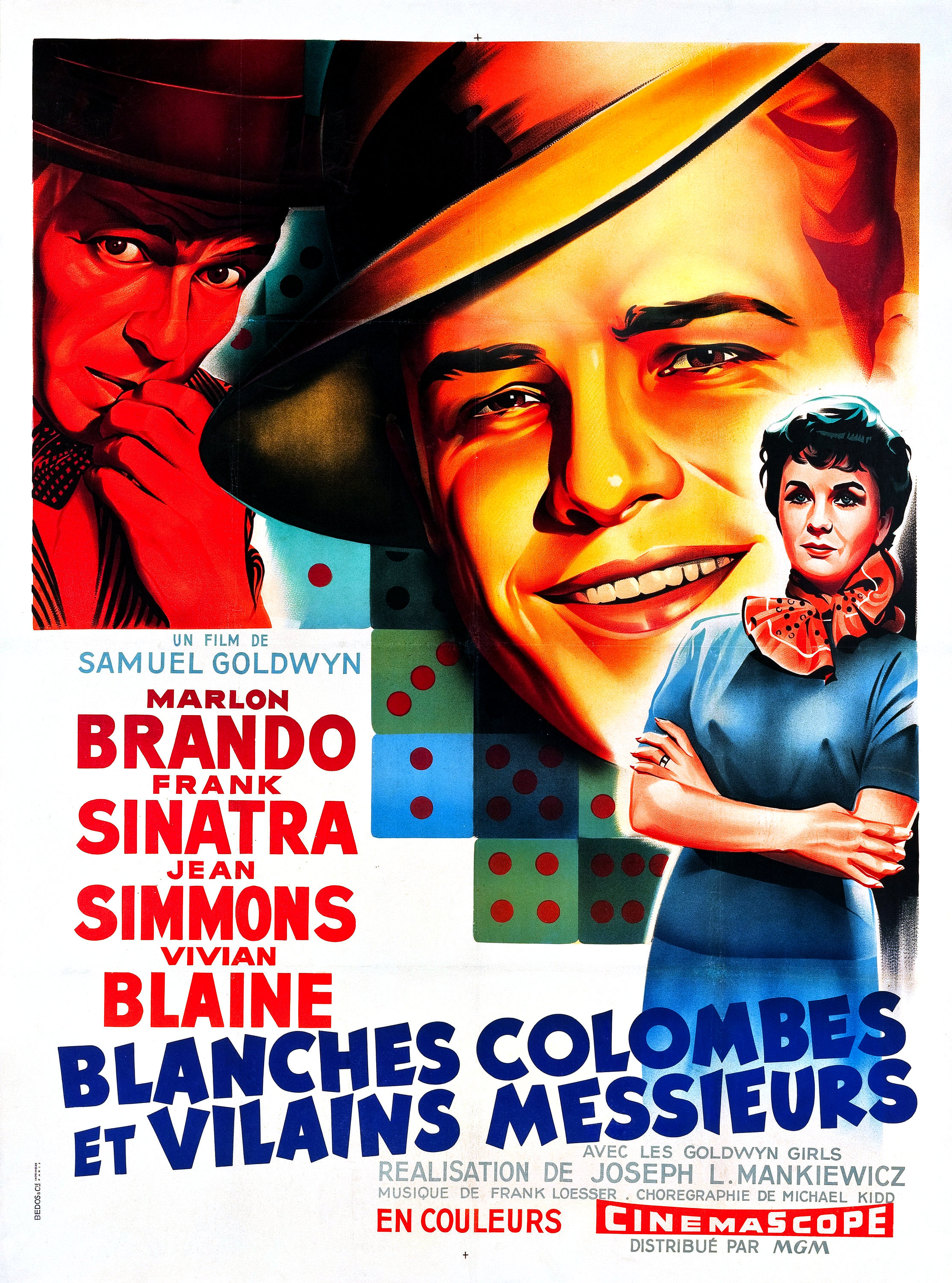 | Avec : Marlon Brando, Jean Simmons, Frank Sinatra, Vivian Blaine, Robert Keith, Stubby Kaye, B.S. Pully, Johnny Silver, Sheldon Leonard | |
