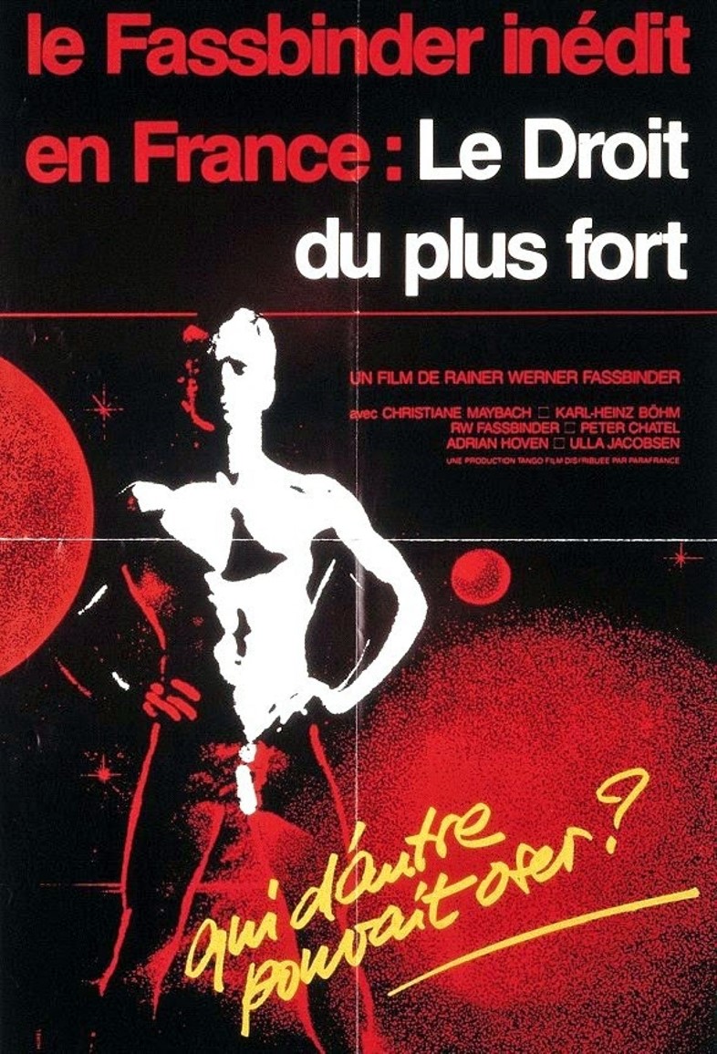 | Synopsis : Lorsque Klaus, son petit ami, est arrêté par la police dans son stand de foire, Franz, un homosexuel, se retrouve ruiné : privé de son amant, il perd emploi et argent. Il retrouve à nouveau l’espoir lorsqu’il gagne 500 000 marks à un concours de pronostics et rencontre au cours d’une soirée un homme élégant et raffiné : Eugen. Franz tombe naturellement amoureux d’Eugen, mais celui-ci exploite les sentiments et la faiblesse de Franz à d’autres fins. C’est ainsi qu’il le convainc d’investir dans l’entreprise déficitaire de son père… | |
