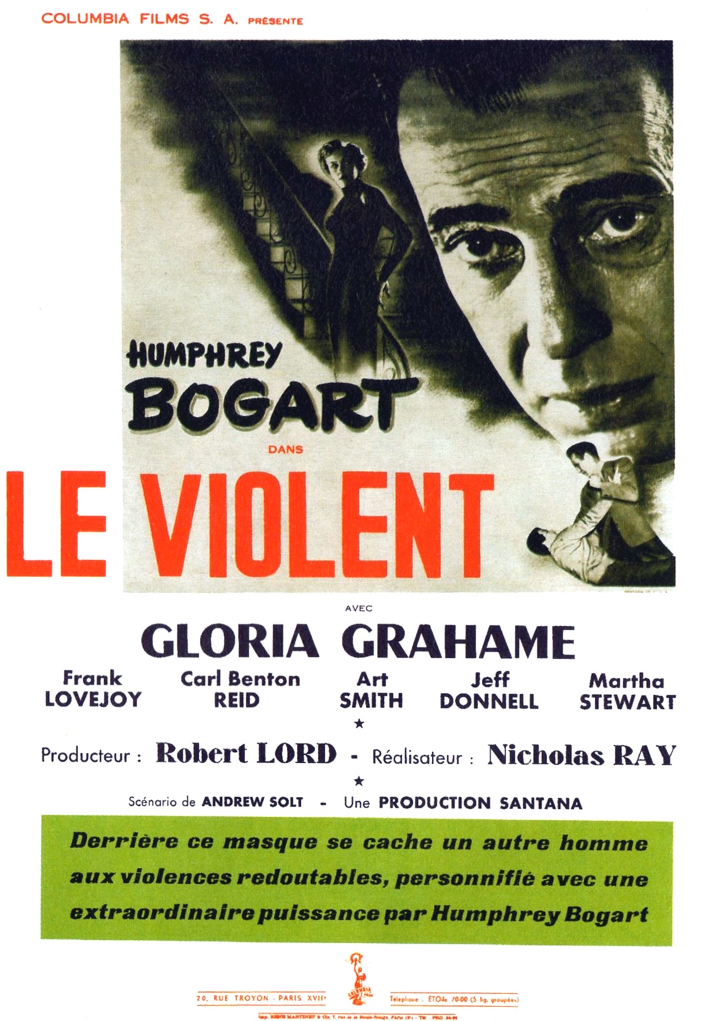 | Avec : Humphrey Bogart, Gloria Grahame, Frank Lovejoy, Carl Benton Reid, Art Smith, Jeff Donnell, Martha Stewart, Robert Warwick, Morris Ankrum | |