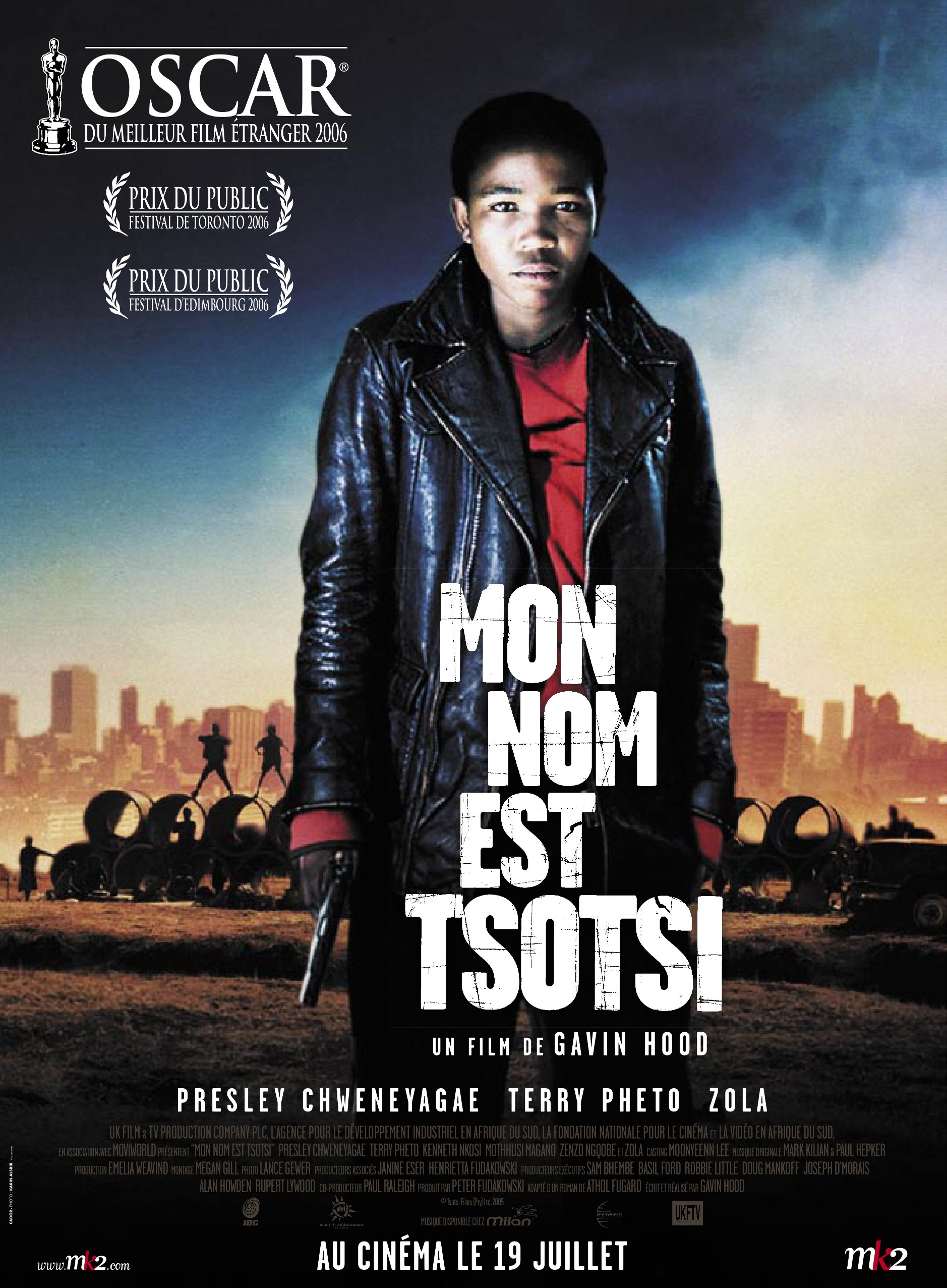 | Synopsis : Dans un bidonville aux abords de Johannesburg, en Afrique du Sud, un jeune homme de 19 ans orphelin a occulté tout souvenir de son passé, jusqu’à son propre nom. Il s’appelle donc Tsotsi, qui signifie « voyou », « gangster » dans le jargon des ghettos. Sans nom, sans passé, sans ambition, il n’existe que dans un présent plein de colère.Il dirige une bande de marginaux : Boston, un instituteur raté ; Boucher, un meurtrier de sang-froid ; et Gorille, un costaud à l’intelligence très moyenne. Lors d’une soirée arrosée, Tsotsi tabasse Boston dans un accès de violence extrême, puis il disparaît dans la nuit, traverse le bidonville et se retrouve dans une banlieue aisée.Une femme descend de sa BMW et tente en vain d’ouvrir le portail de sa maison. Tsotsi sort son arme, l’agresse, tire et s’échappe avec la voiture. Un enfant pleure sur la banquette arrière… | |