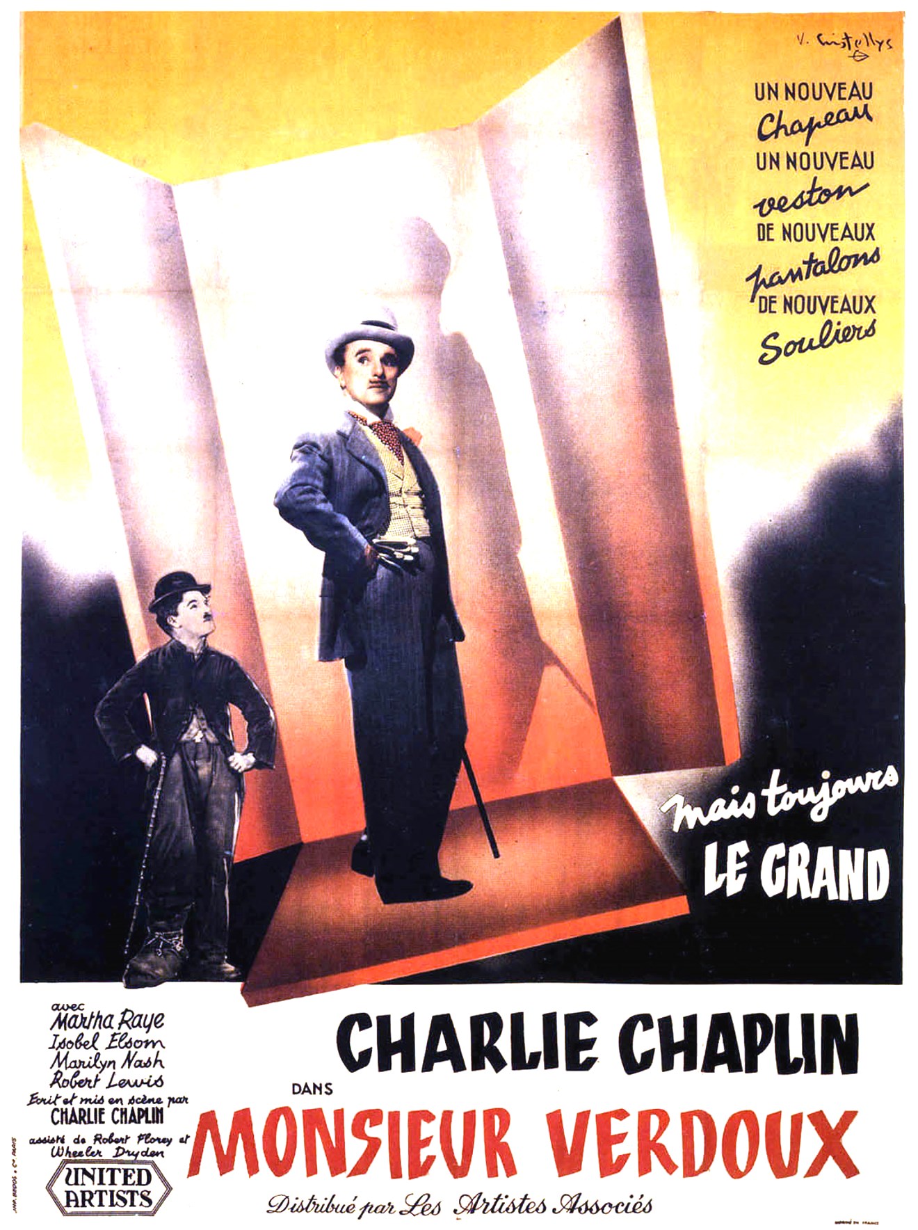 | Synopsis : Marié et père d’un jeune garçon, Henri Verdoux, qui est employé de banque, se trouve soudain sans travail. Son expérience lui permet de se lancer dans des opérations boursières dont le financement lui est assuré par des femmes mûres qu’il épouse avant de les faire disparaître… | |