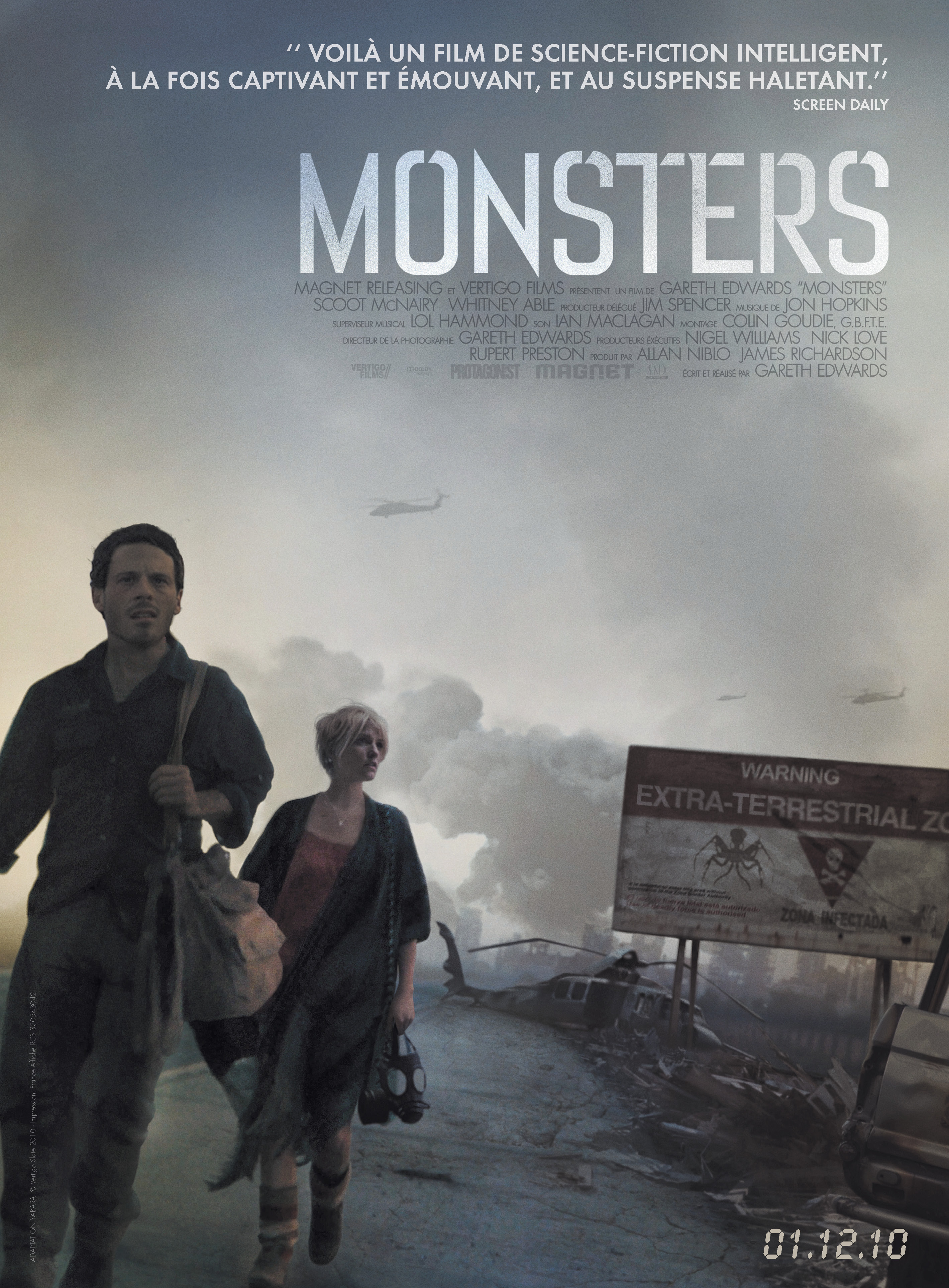 | Synopsis : Une sonde de la NASA s’écrase dans la jungle mexicaine, libérant sur terre des particules d’une forme de vie extra-terrestre. Six ans plus tard, le Mexique et le Costa-Rica sont devenus des zones de guerre désertées par les populations locales, mises en quarantaine et peuplées de créatures monstrueuses. Un photographe est chargé d’escorter une jeune femme à travers cette zone dévastée. Seuls sur la route, ils vont tenter de rejoindre la frontière américaine… | |