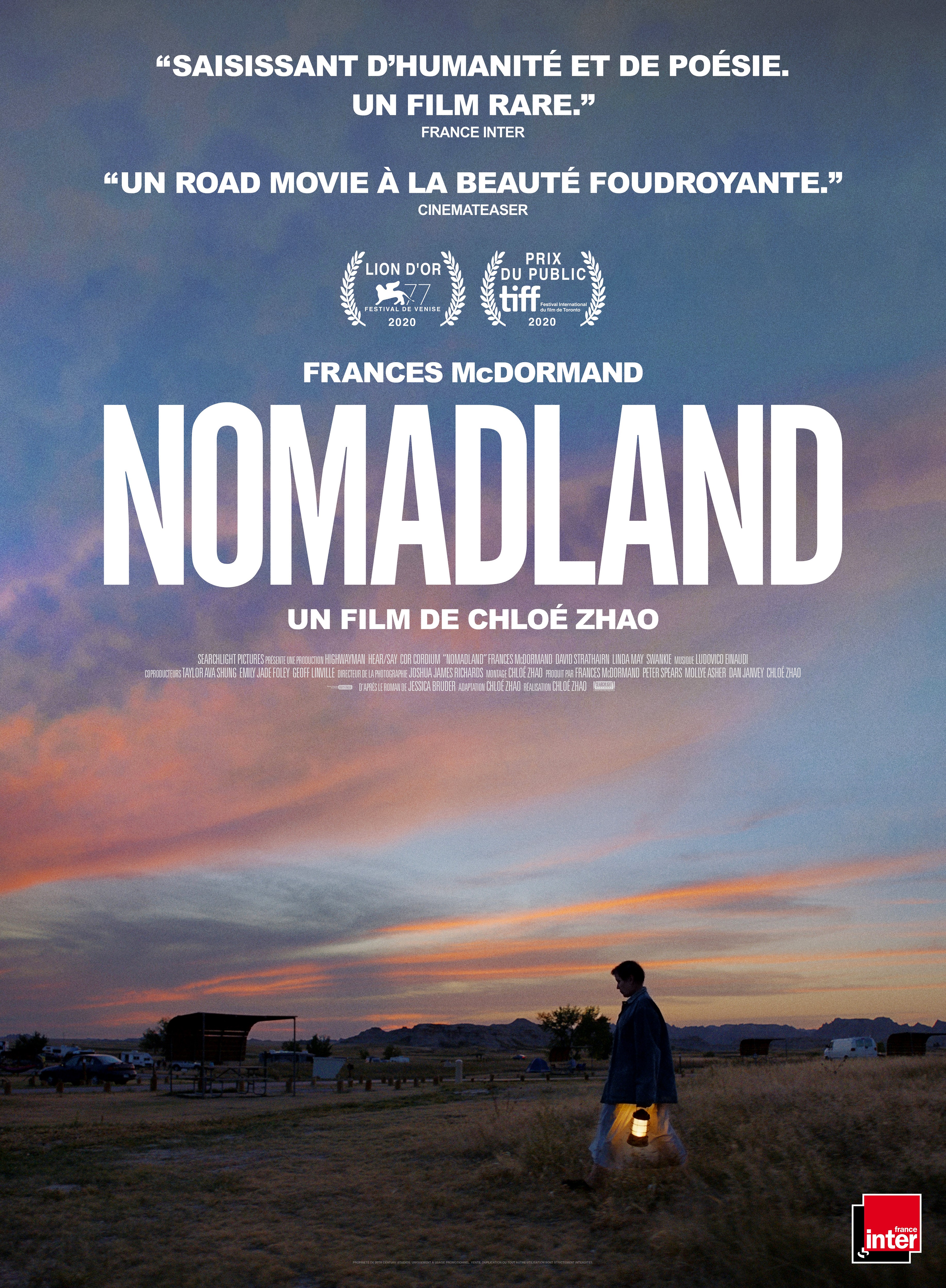 | Synopsis : Après l’effondrement économique de la cité ouvrière du Nevada où elle vivait, Fern décide de prendre la route à bord de son van aménagé et d’adopter une vie de nomade des temps modernes, en rupture avec les standards de la société actuelle. De vrais nomades incarnent les camarades et mentors de Fern et l’accompagnent dans sa découverte des vastes étendues de l’ouest américain. | |