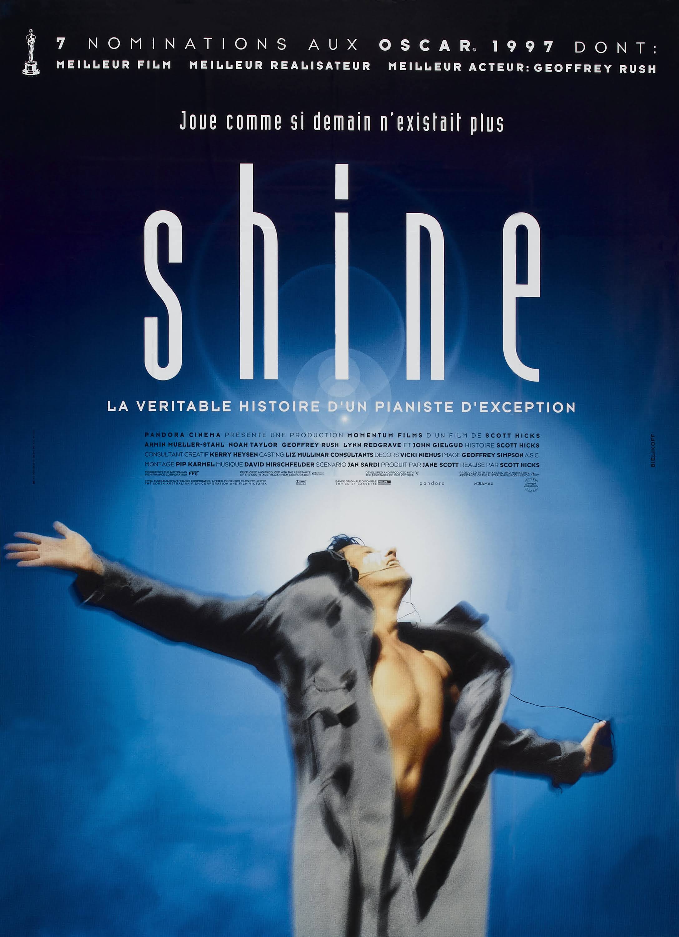 | Synopsis : David Helfgott, fils d’immigrés polonais en Australie, a appris le piano avec son père, Peter. Brillant, il remporte de multiples récompenses jusqu’au jour où il est remarqué par un musicien renommé qui lui propose de partir aux Etats-Unis afin d’y poursuivre sa formation. Mais Peter s’y oppose farouchement. David obéit et rumine. Les années passent, et quand une nouvelle occasion se présente, David passe outre l’interdit paternel. Renié par Peter, il va étudier à Londres. Son talent s’épanouit sous la direction du légendaire Cecil Parkes. Lors d’un concours, David s’attelle à l’exécution d’une partition remarquable et redoutable, le «Concerto n°3» de Rachmaninov. L’interprétation en est si extraordinaire qu’elle le terrasse… | |