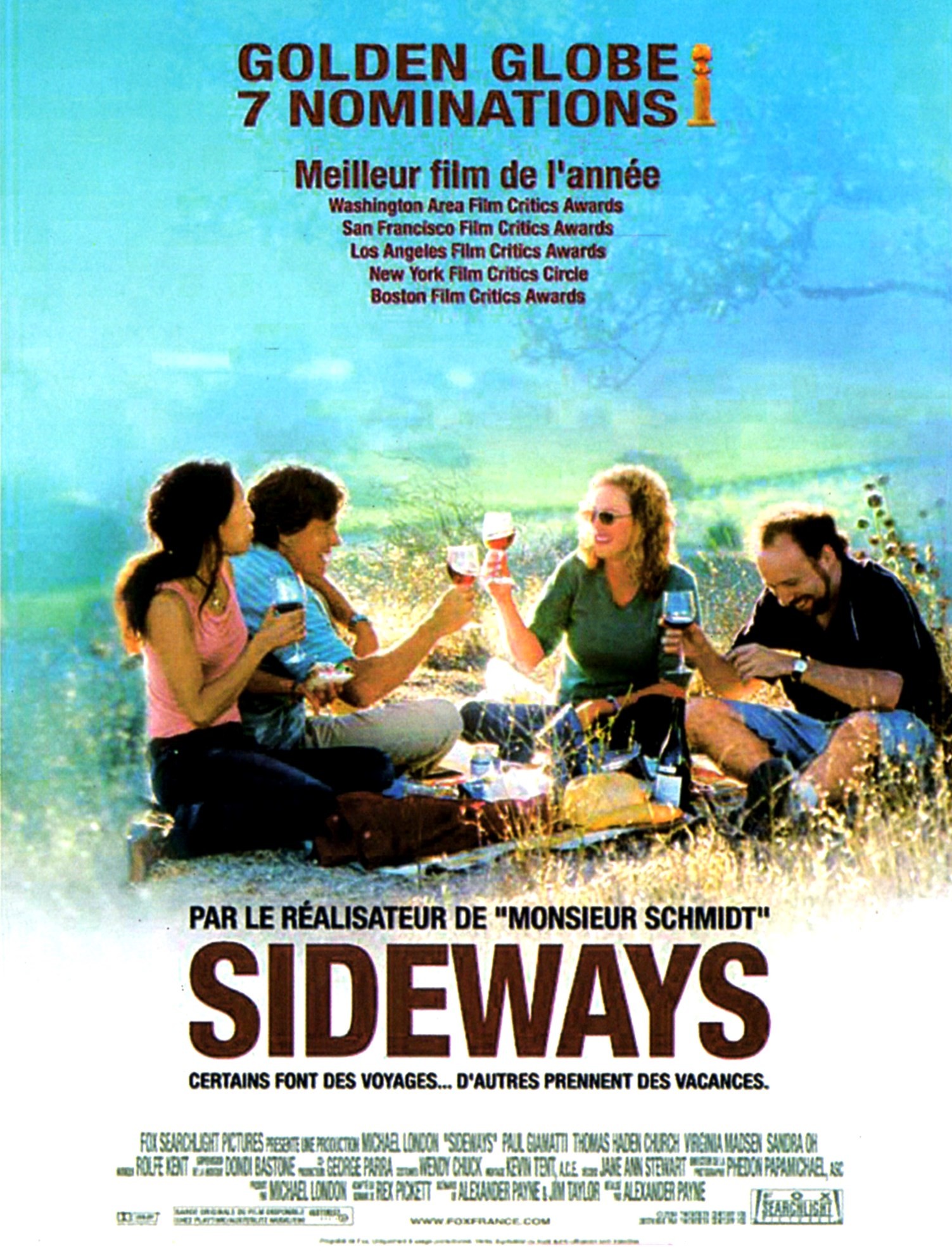 | Avec : Paul Giamatti, Thomas Haden Church, Virginia Madsen, Sandra Oh, Marylouise Burke, Jessica Hecht, Missy Doty, M.C. Gainey, Alysia Reiner | |