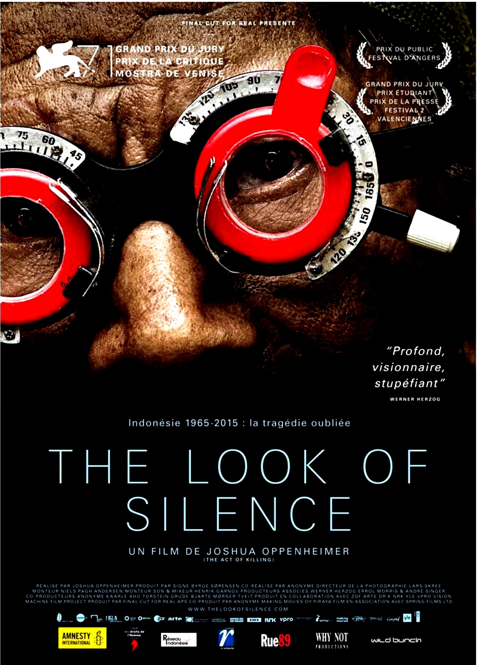 | Synopsis : Une famille rescapée du génocide indonésien de 1965 découvre, à travers des images tournées par Joshua Oppenheimer, la manière dont leur fils a été assassiné ainsi que l’identité des meurtriers. Adi, le plus jeune de la fratrie né juste après les massacres, est résolu à briser le tabou du silence et de la peur. Ophtalmo itinérant, il profite de ses tournées pour confronter les responsables du meurtre de son frère – une chose inimaginable dans un pays où les assassins sont encore au pouvoir. Tourné juste avant la sortie de The Act Of Killing, nominé à l’Oscar du meilleur documentaire et dont la sortie avait provoqué un choc politique en Indonésie, The Look Of Silence en est le complément indispensable. Ensemble ces deux films initient autant qu’ils portent témoignage de l’effondrement de cinquante ans de silence. | |