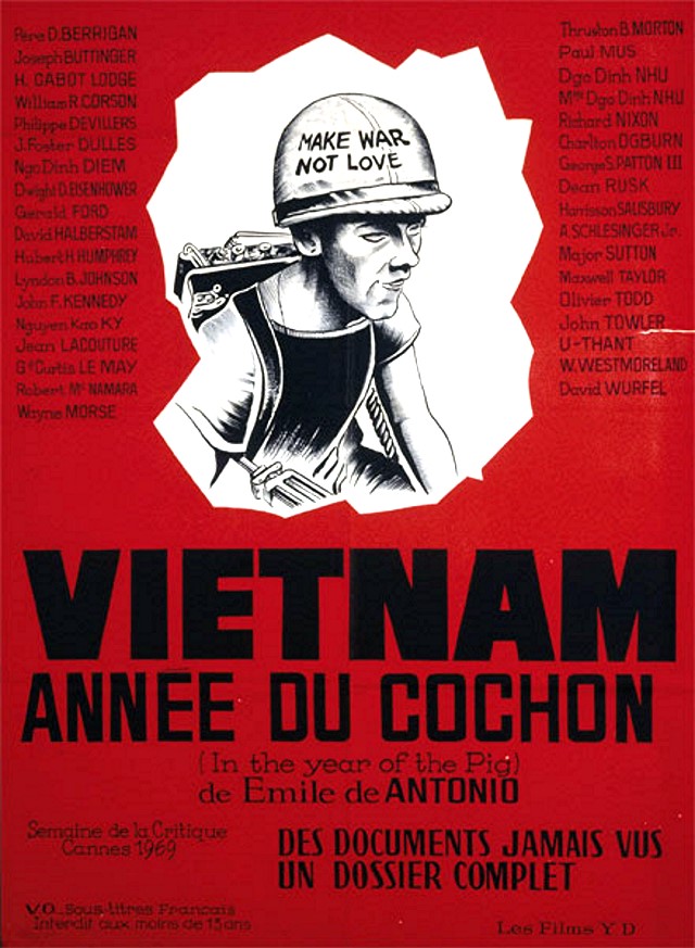 | Synopsis : De nombreux films ont pris cette guerre pour sujet. Moins connus, il existe d’admirables documentaires qui, mieux que les longs-métrages de fiction, témoignent de l’exceptionnelle cruauté d’un affrontement qui causa la mort de 58 000 Américains, de plus de 3 millions de Vietnamiens. Emile de Antonio a réalisé au début de la guerre du Vietnam, le réalisateur s’est infiltré méthodiquement dans le tumulte des événements. Il a été le premier à tenter d’expliquer les raisons profondes de la guerre. Avec des méthodes d’archéologue. | |